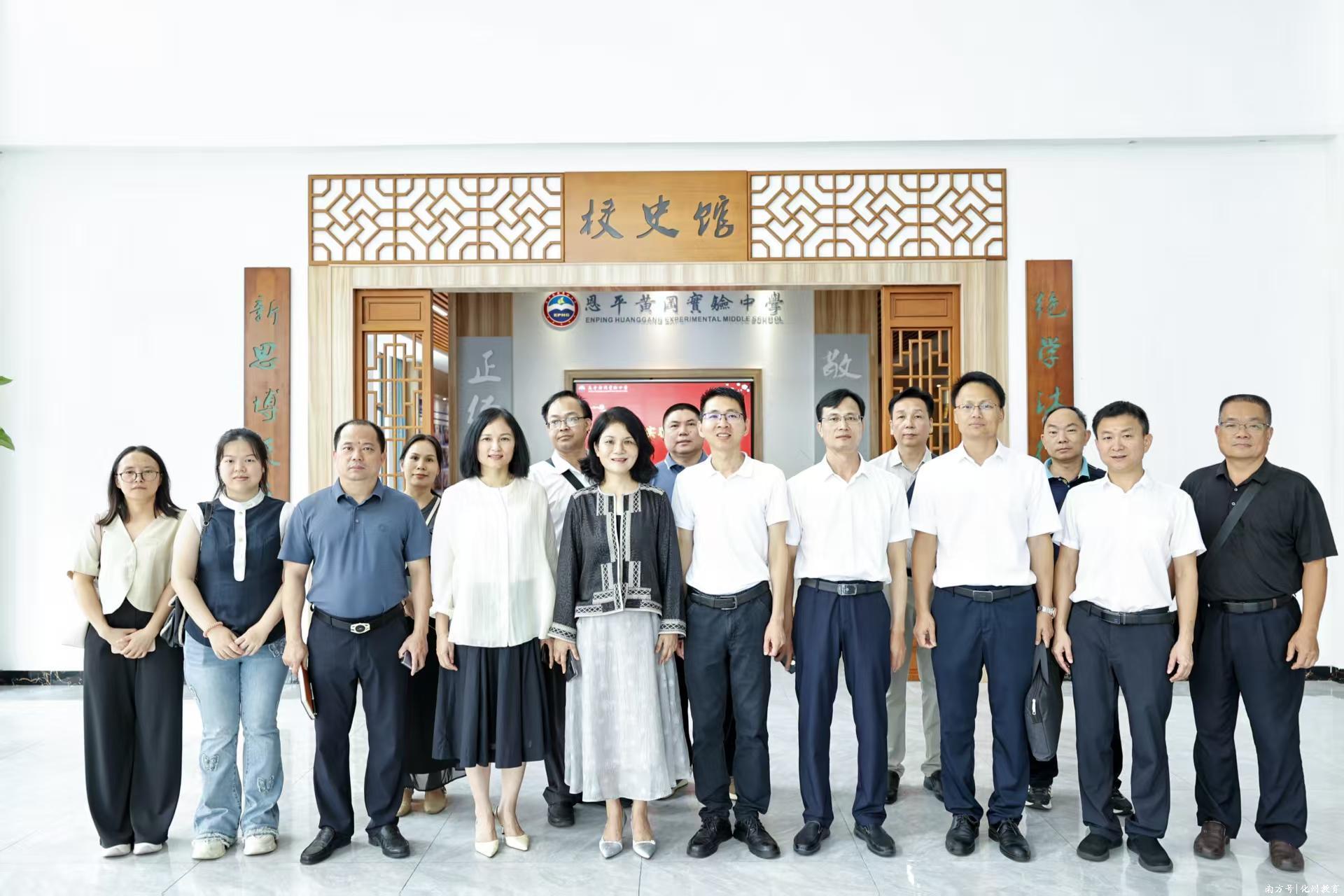 此次调研行程紧凑,内容丰富。上午9时,调研组一行首先抵达恩平黄冈实验中学,该校坐落于鳌峰山下、锦江河畔,占地120亩,建筑面积4万多平方米,设64个教学班,在校生3600余人,环境优美且底蕴深厚。其教学成果显著,连续5年高考包揽恩平市文理科第一。双方随后在该校行政楼三楼会议室座谈,深入交流教育发展议题。